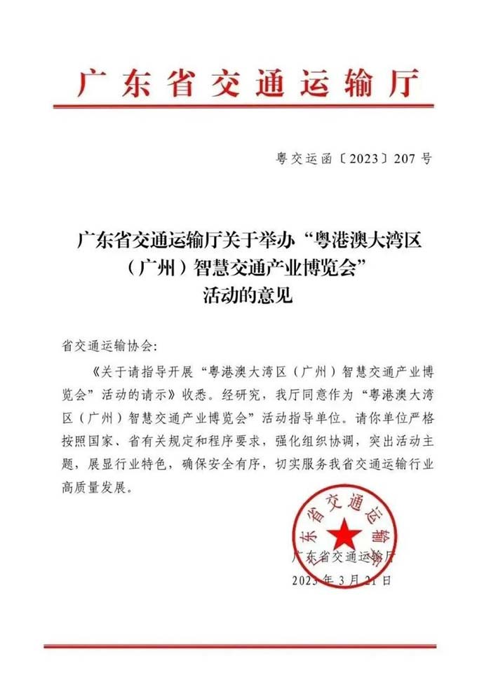 近日,廣東省交通運輸廳發函“關于舉辦粵港澳大灣區(廣州)智慧交通產業博覽會活動的意見”。
