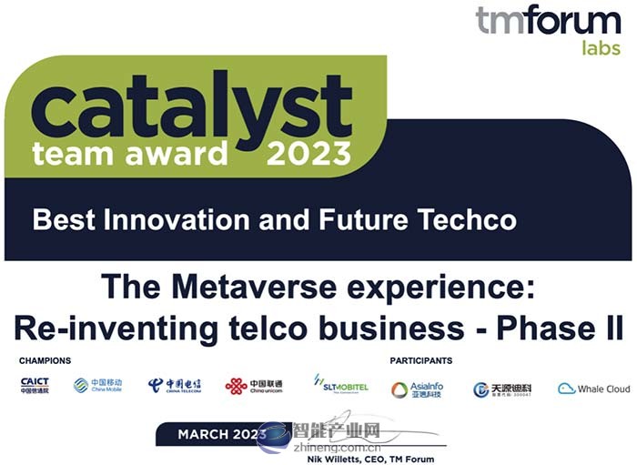 近日,由信息通信行業(yè)權(quán)威國際組織TM Forum(電信管理論壇,縮寫:TMF)主辦的數(shù)字化轉(zhuǎn)型世界亞洲峰會(huì)(Digital Transformation World Asia)在泰國曼谷召開。峰會(huì)期間舉行的TM Forum DTWA 2023催化劑項(xiàng)目頒獎(jiǎng)典禮上,亞信科技與中國信通院、中國電信研究院、浙江移動(dòng)、中國聯(lián)通軟研院等聯(lián)合打造的“元宇宙營業(yè)廳”、“元宇宙智能運(yùn)維”從眾多項(xiàng)目中脫穎而出,榮獲“最佳創(chuàng)新與未來科技獎(jiǎng)”。