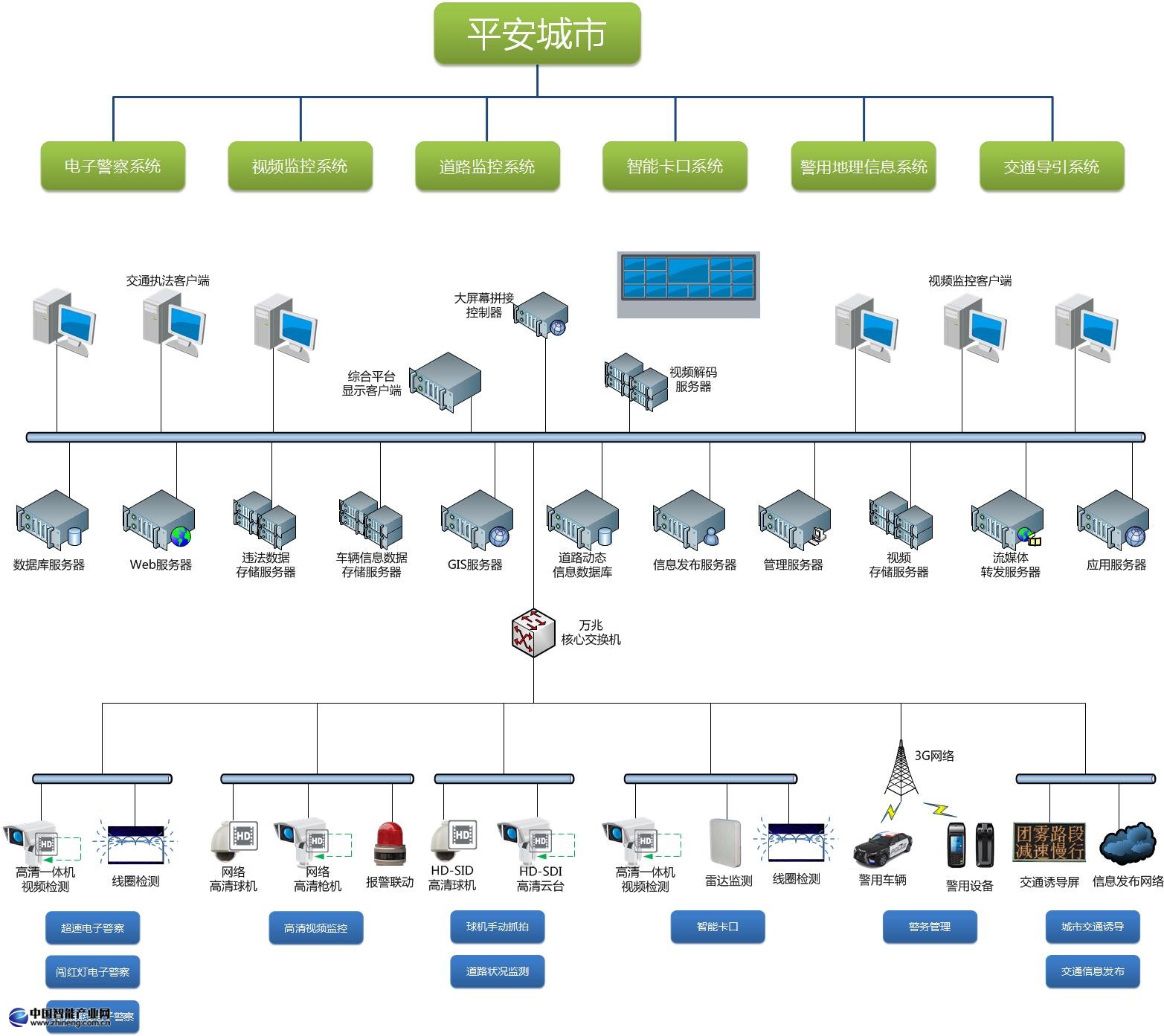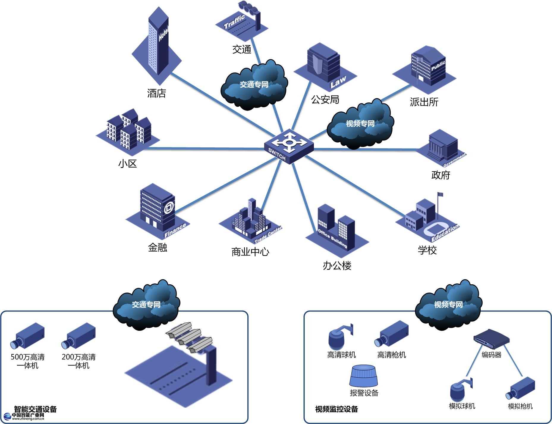 平安城市綜合解決方案主要針對平安城市項目的建設。中盟科技的綜合解決方案包含兩個主要系統部分,智能交通系統及視頻監控系統,提供前端多種子系統的整合和集成。